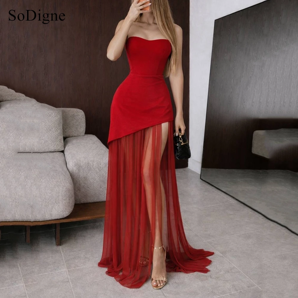 Sodigne elegantní soumrak šaty ramínek bez rukávů večírek šaty jednoduchý tyl strana štěrbinou a-line ples gowns přizpůsobené