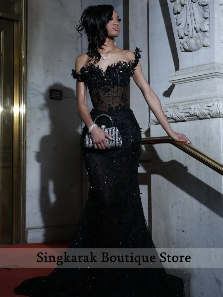 Matric tančit černá ples šaty 2026 luxusní ramínek broušené sklo mořská panna večírek šaty s korzet černá dívčí soumrak gowns customiz