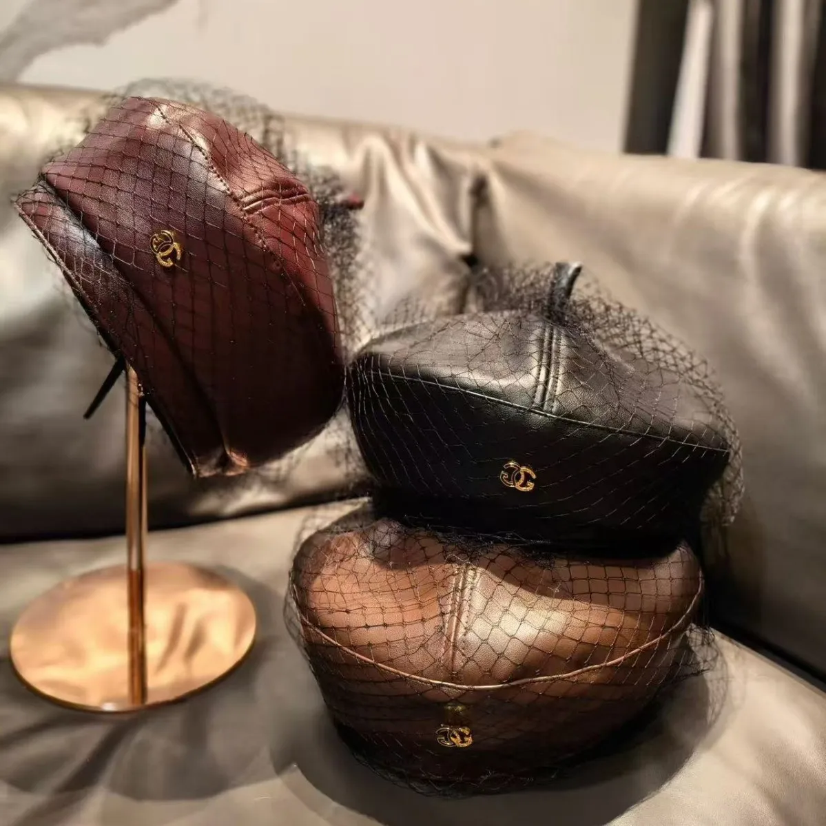Dámský nový pletivo PU kůže baret outdoorové versatile móda nika artista klobouky ležérní módní čepice vhodný pro celý seaso