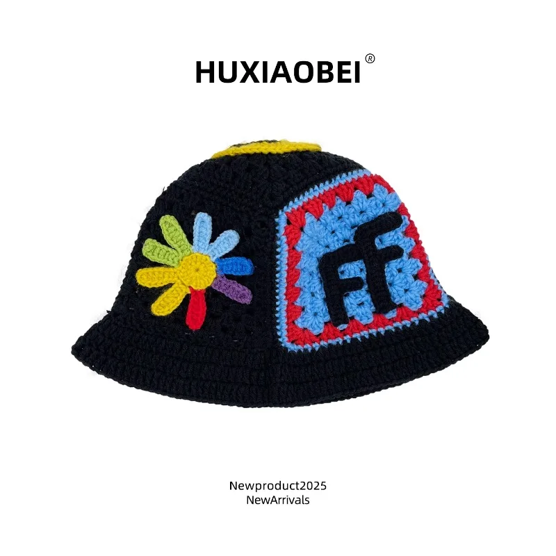 Korejské ruční háčkované kvést kbelík čepice ženy jaro léto cestovní velký rozměr úsměv obličej personalizované pletené kbelík čepice
