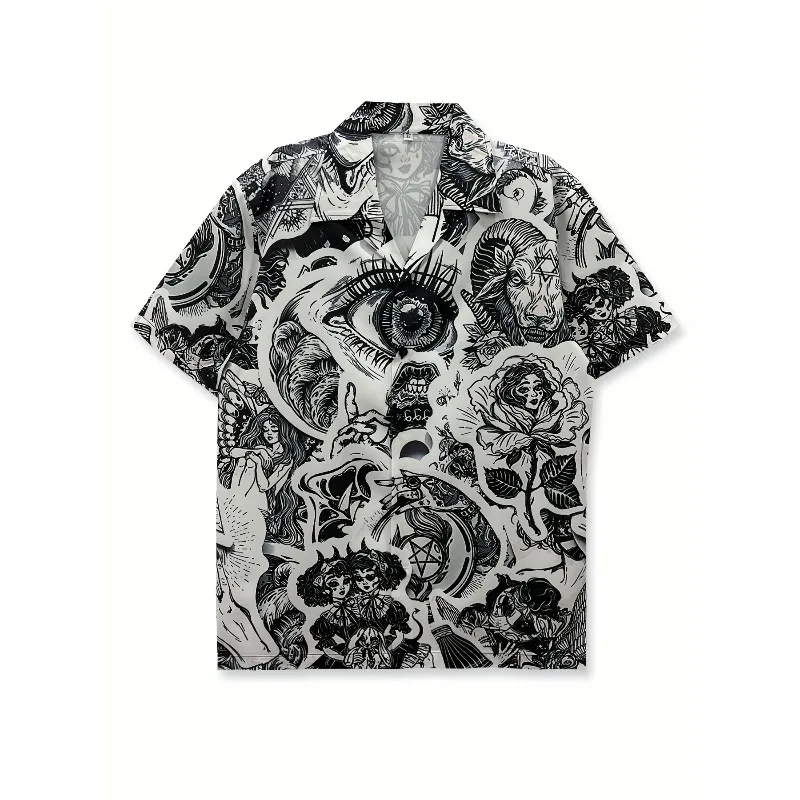 Kvést košile pánské pláž košile neutrální hip-hop retro Y2K skica styl temný jednoduchý osobnost módní léto valentine's den