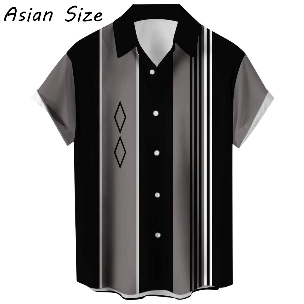Jednoduchý styl proužek barva blokování grafické pánské košile krátký rukáv klopa košile havajská topy button-down blůza volné camisa