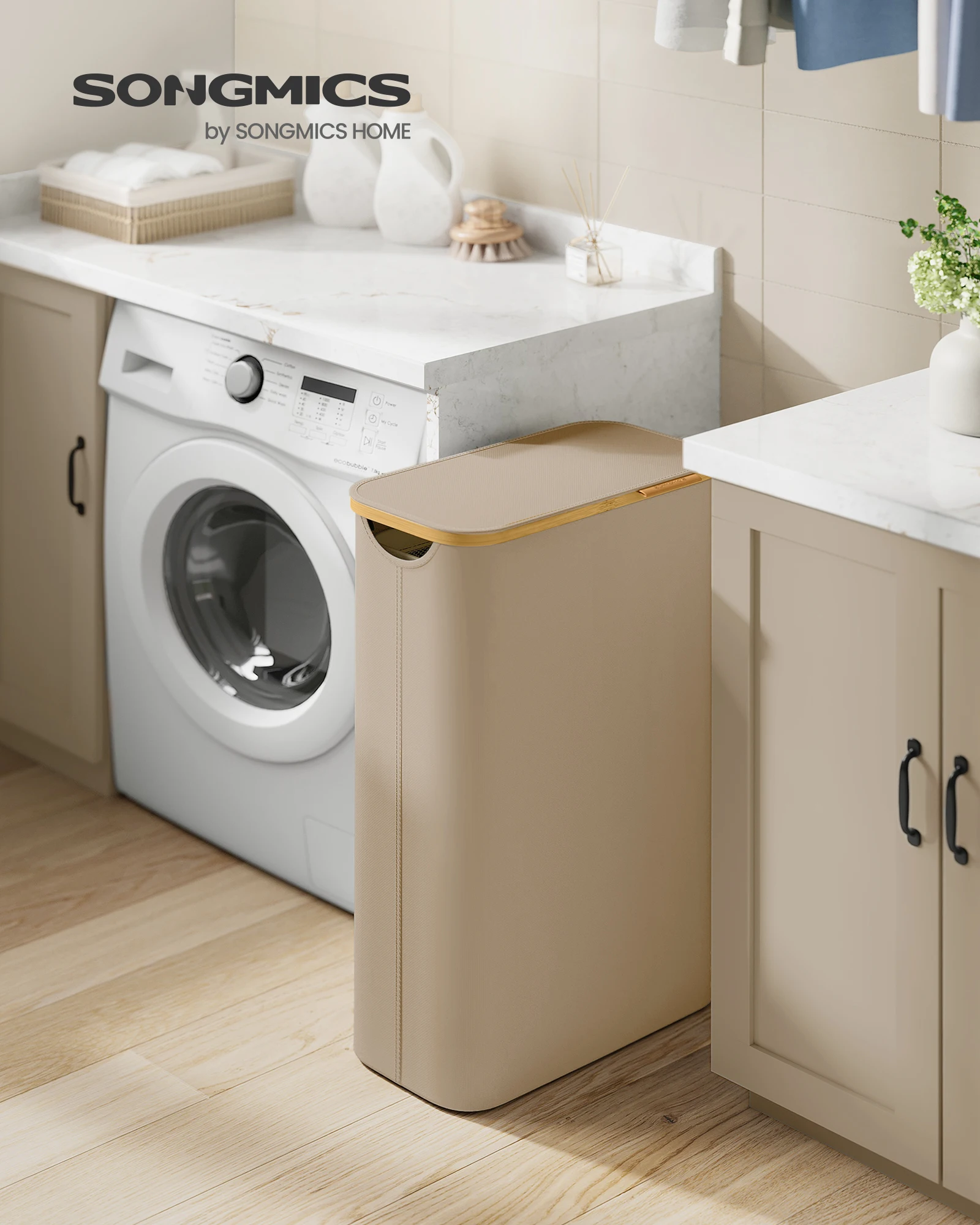SONGMICS prádelna koš s kryt 65 L prádelna kolektor mezera šetření odnímatelný prádelna brašna bambus madla skládací
