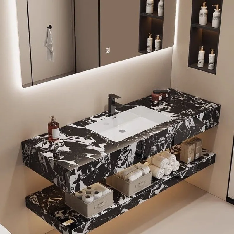 Lehký luxusní koupelna hornina slab bazén koupelna skříň kombinace keramika bezešvý integrovaný mytí stůl umyvadlo bortit se sada