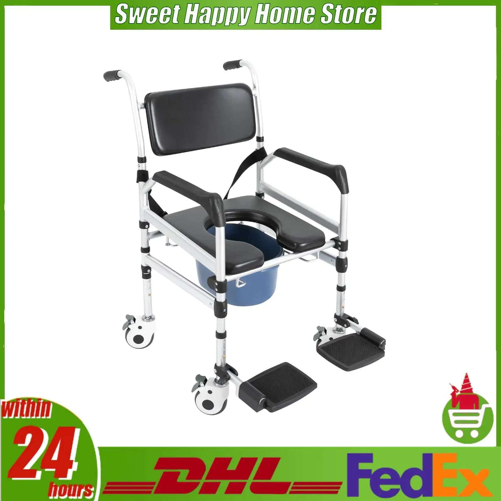 Přenosné sprcha commode židle 160kg schopnost skládací koupelna klozet Seat s kol pro seniory invalida nemocnice péče