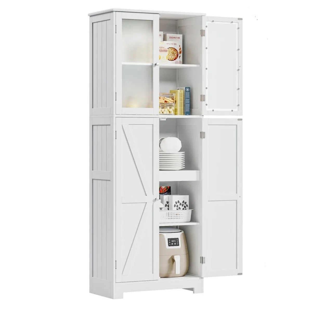 Koupelna šatník bílá, koupelna šatník s 4 dveře a 6pro přihrádek, vysoký šatník kuchyň šatník pro koupelna, žití pokoj, jídelní pokoj, B
