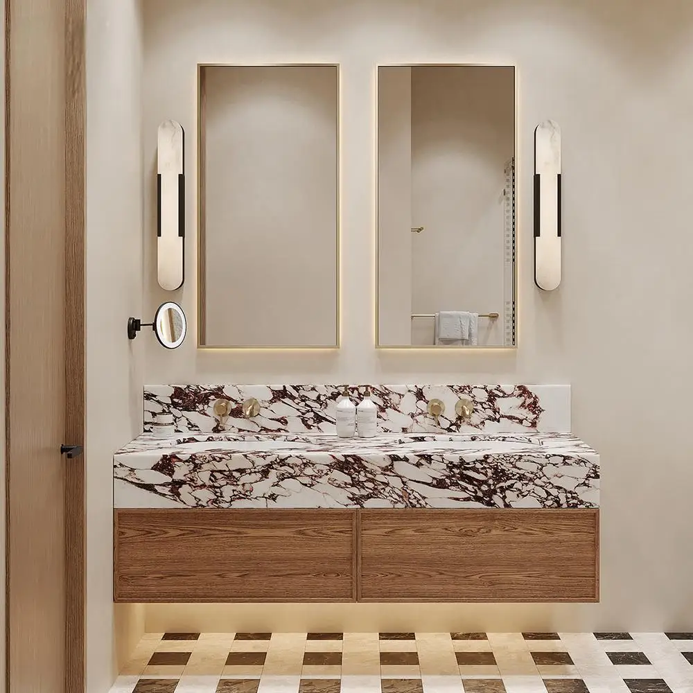 Francouzský retro dub koupelna skříň kombinace floor-to-ceiling hornina slab horké ohýbací integrovaný bazén