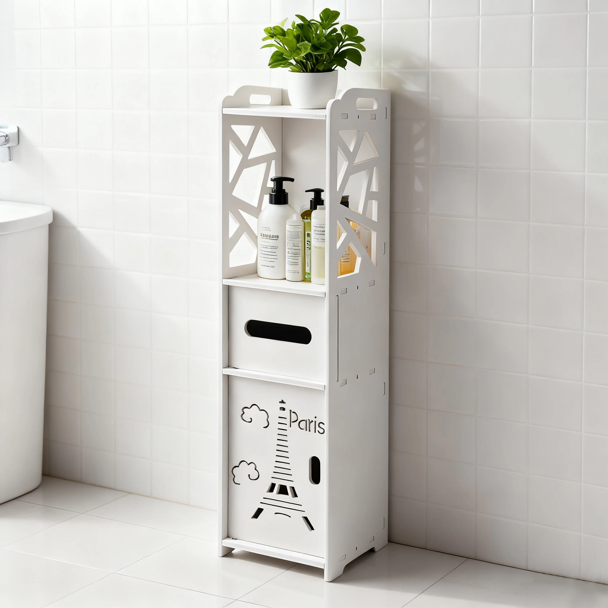 Nábytek koupelna sloup, nábytek koupelna úložný, klozet skříň záchod s papír držák, koupelna skříň polici pro ložnice předsíň (white)