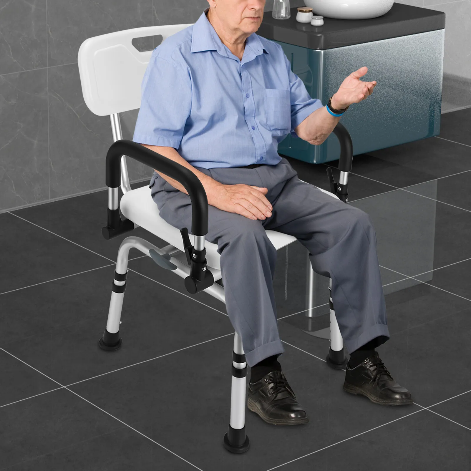 360à‚° drehbarer duschstuhl höhenverstellbarer 27.55-30.71in mit armlehnen rückenlehne