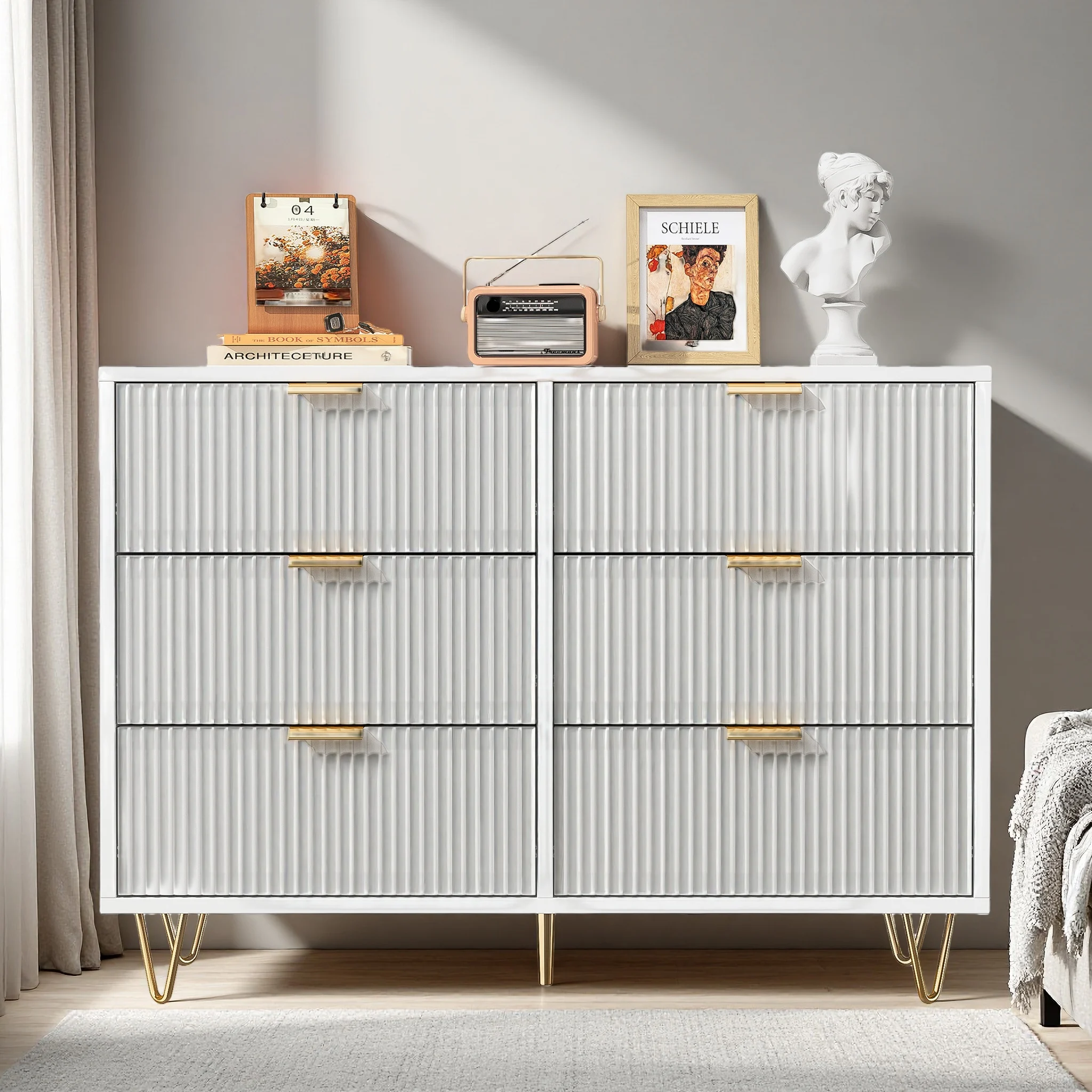 Comanlai dřevěný komora z zásuvek, ložnice úložný nábytek jednoduchý a elegantní styl příborník s madlo a nohou zlato
