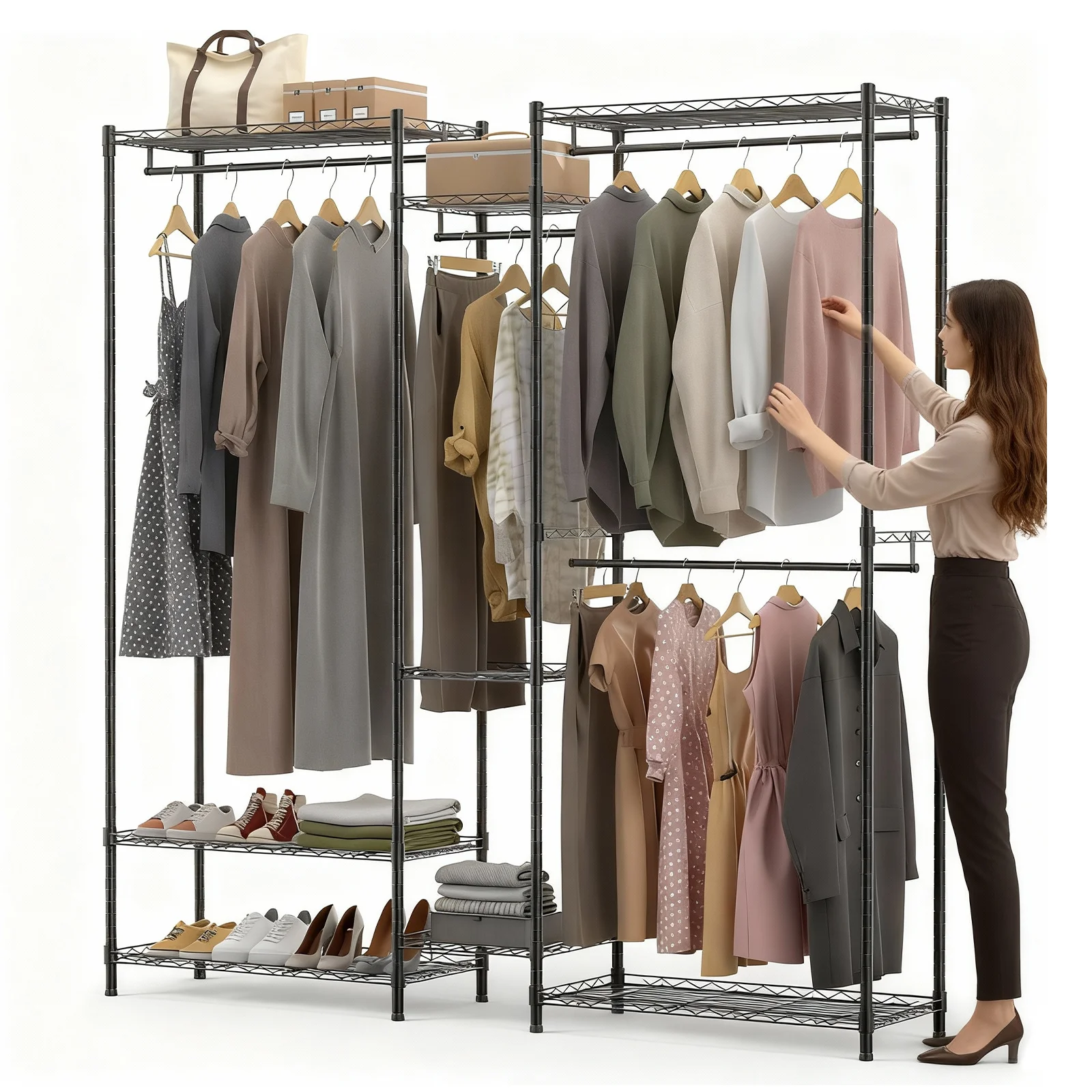 Těžký celní poplatek samostatný oblečení držák 8 drát police & 5barvy závěsný pruty nastavitelný skříni organizátor přenosné šatník úložný