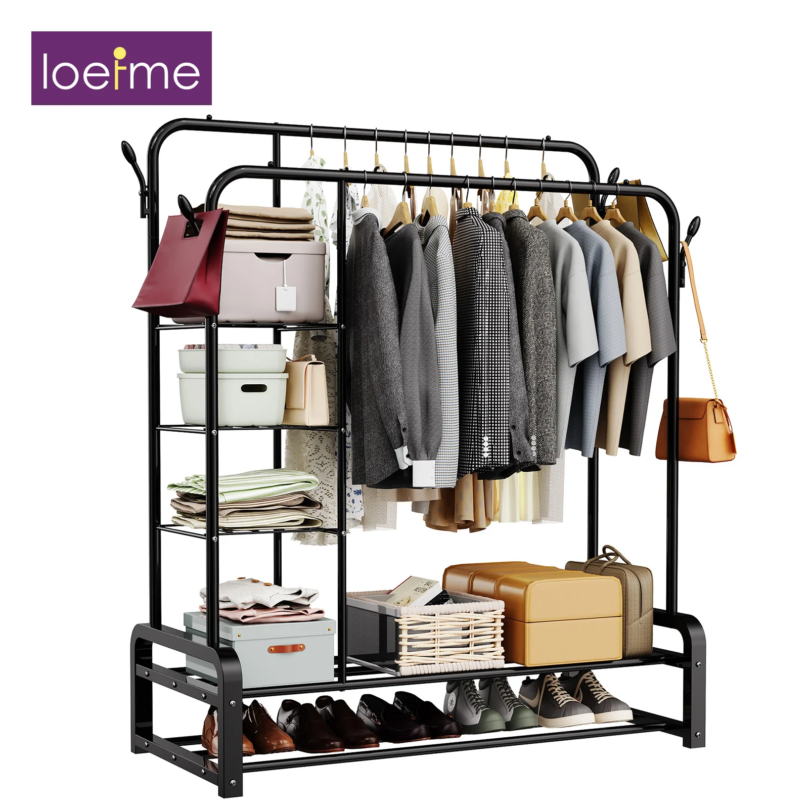 LOEFME 110x52x154cm multifunkční oblečení držák s police bota držák pro kabáty pytle úložný organizátor pro ložnice žití pokoj