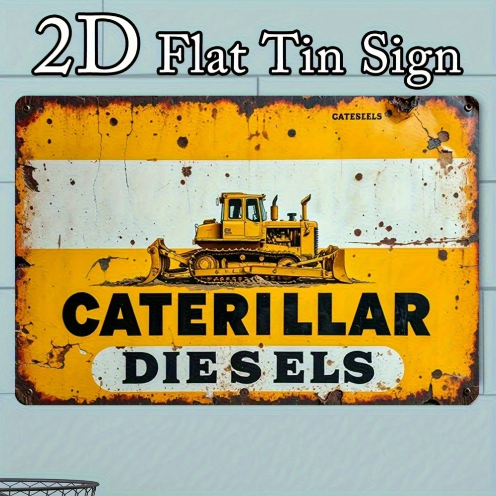 Plechovka značka - žlutý & černá zeď umění s buldozer ilustrace, rustikální staveniště enthusiast dekorace, , kov autodílna zeď hangi