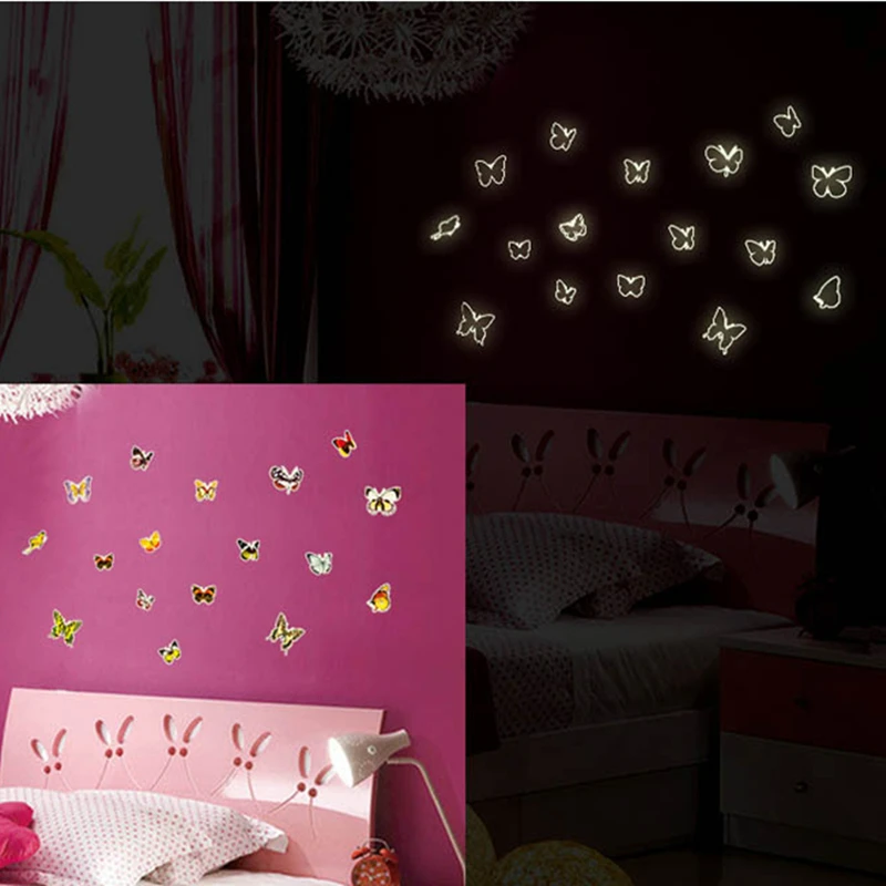Světelný motýl zeď nálepky záře butterfly fluttering v temný pro žití pokoj děti ložnice koupelna domácí dekorace