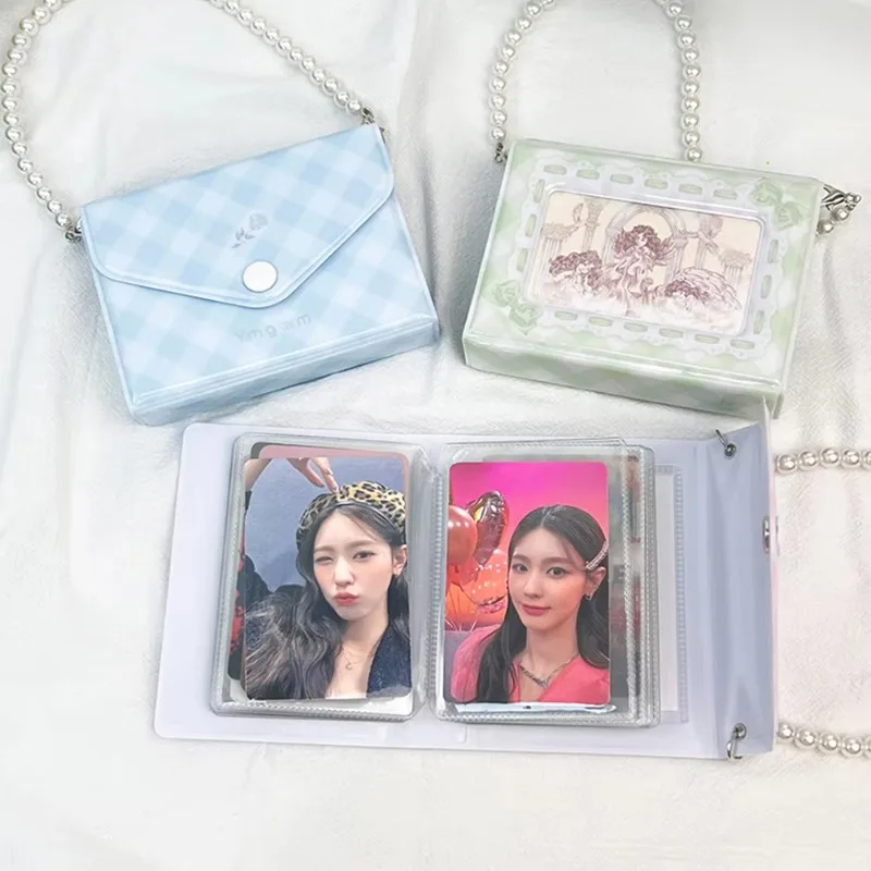 Protable mini pojivo hudební album kpop photocard držák s perla běžící pás korejské modla karta fotka úložný sbírat kniha cestovní hudební album