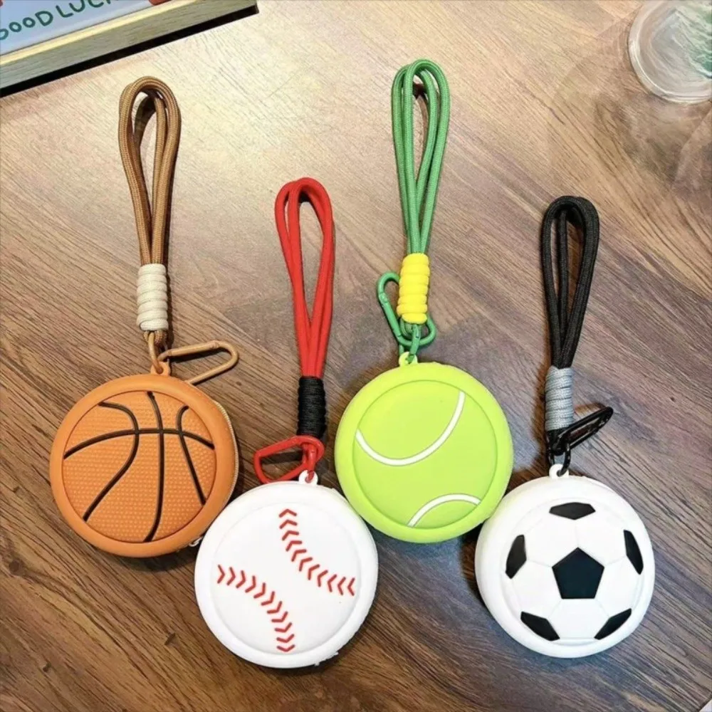 Kreativní kreslený sporty úložný brašna basketbal odbíjená klíč prsten náprsní taška baseballová fotbal klíčenka devizy měšec sluchátko pouzdro