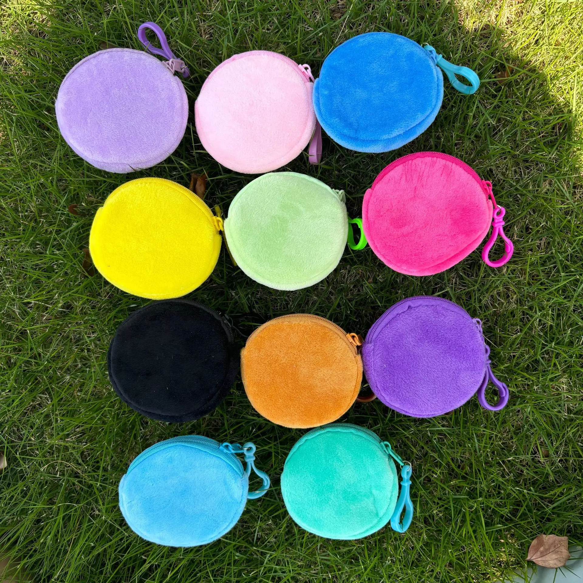 Devizy měšec, móda měkké plyš kolo devizy pouch, přenosné malý měnit měšec roztomilá zip náprsní taška s karabina