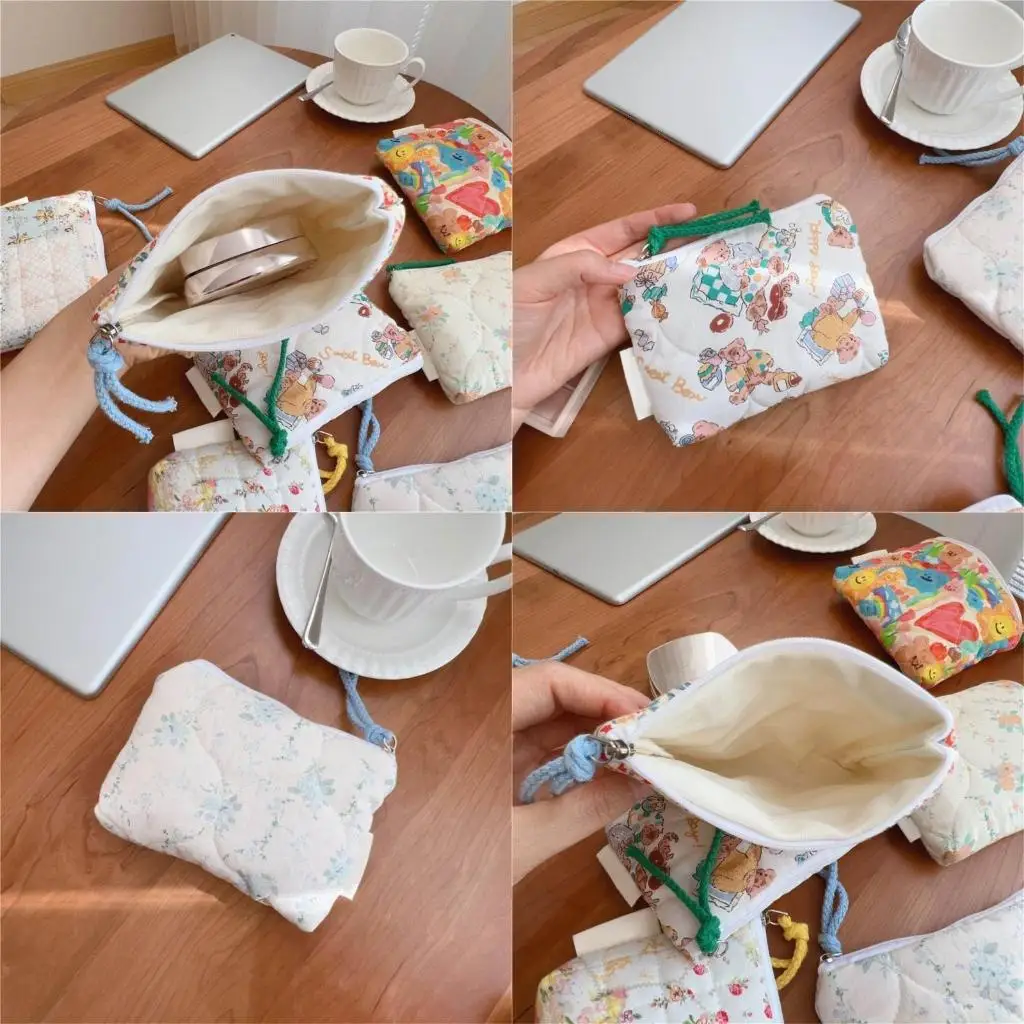 Nový kreslený květinová devizy měšec luk tisk velký schopnost úložný brašna sluchátka brašna