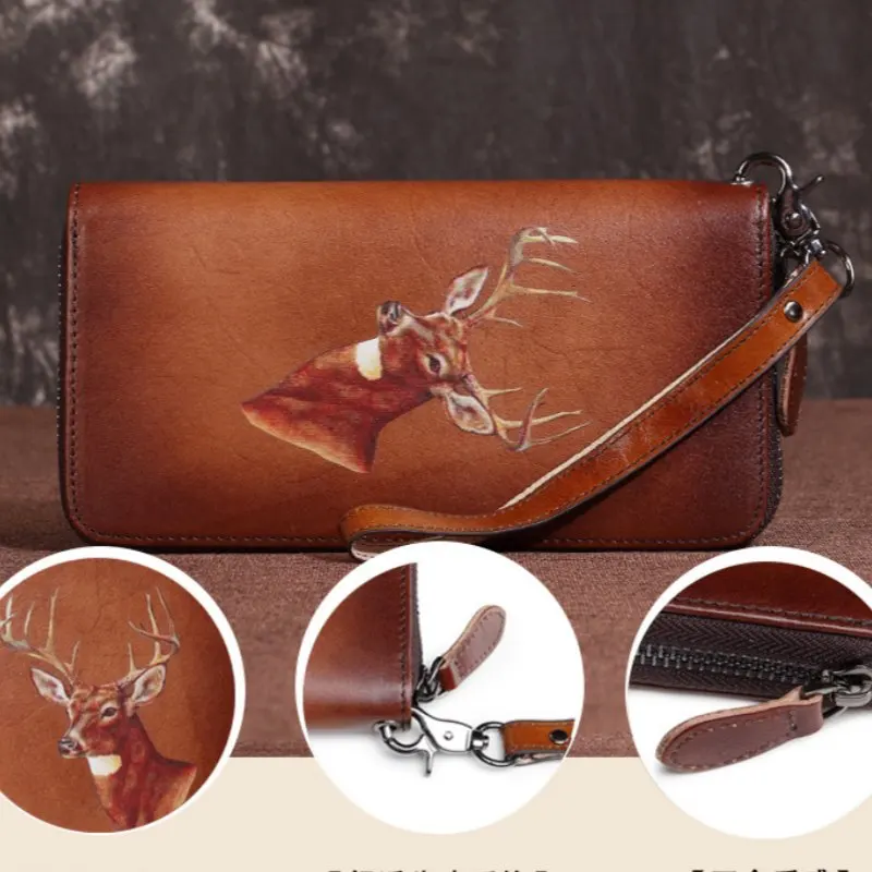 Pánské devizy měšec retro originální kůže karta držák brašna ruční devizy náprsní taška ženy přenosné krátký měšec karta pouzdro rýt wallets