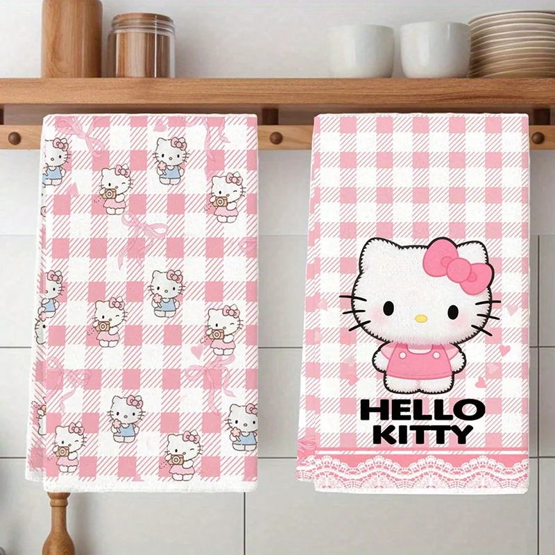 2ks ahoj kočička růžová přehoz kuchyň ručník - 2D tisk single-sided super měkké savé rychlý suchý miska ručník, stylové kuchyň dec