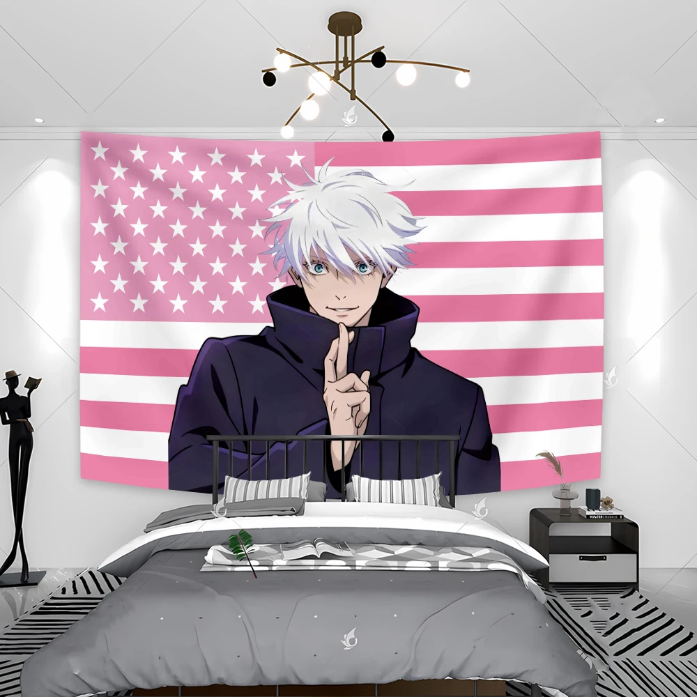 Horké anime zeď plakát tapiserie americký fahnen gojo satoru džiu-džitsu kaisen univerzitní kolej ložnice outdoor parties gift gobelíny
