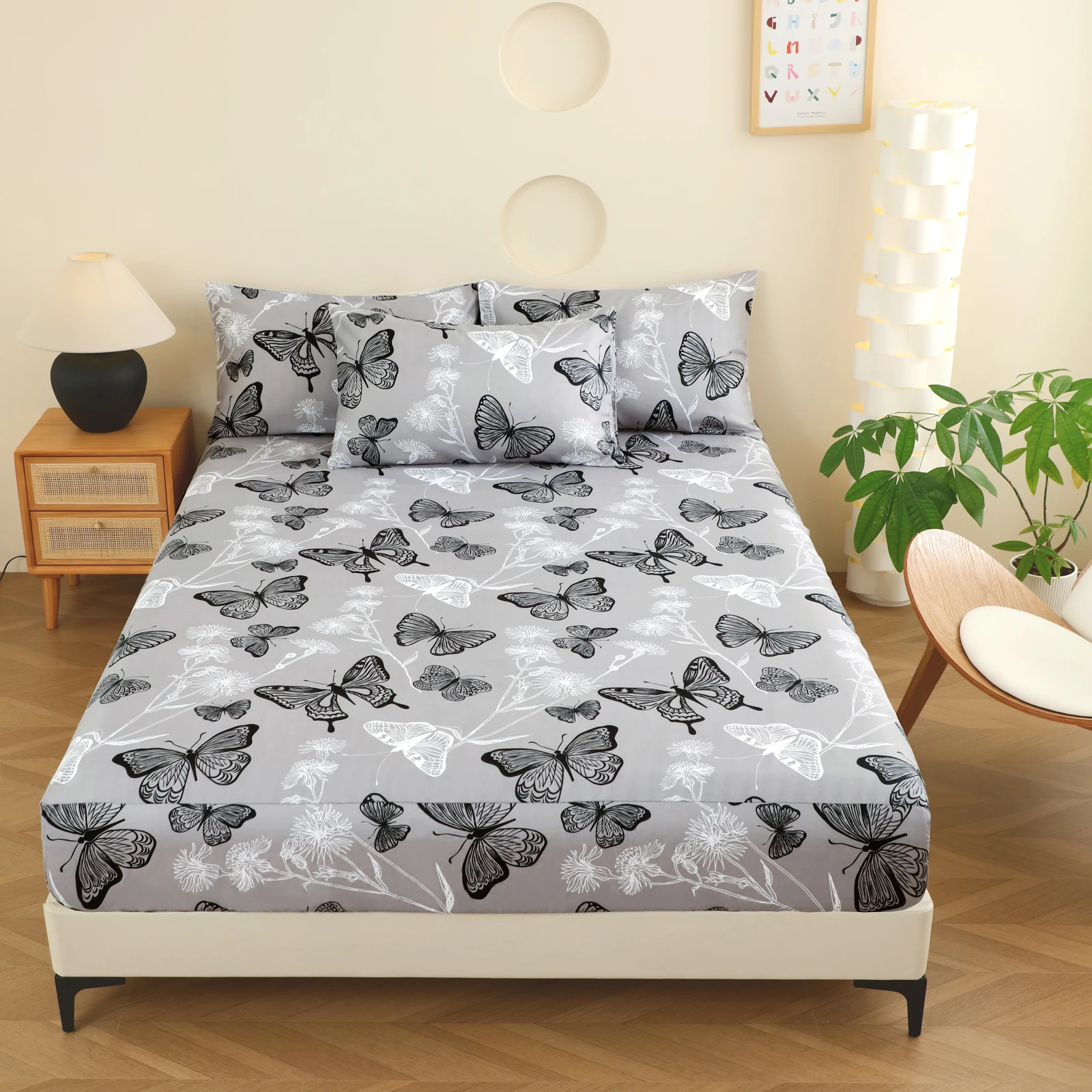 Motýl tisk napínací aršík 1-piece matrace zakrýt (pillowcase ne- included) multi-color polyesterová vlákno obdélníkové three-dimensional dirt-proof matrace ochránce polyesterová five-sided wrap-around napínací aršík vhodný pro ložnice, kolej, cizozemský pokoj, homestay, all-season použít, stroj omyvatelné