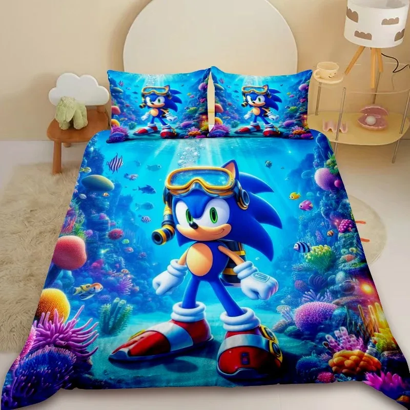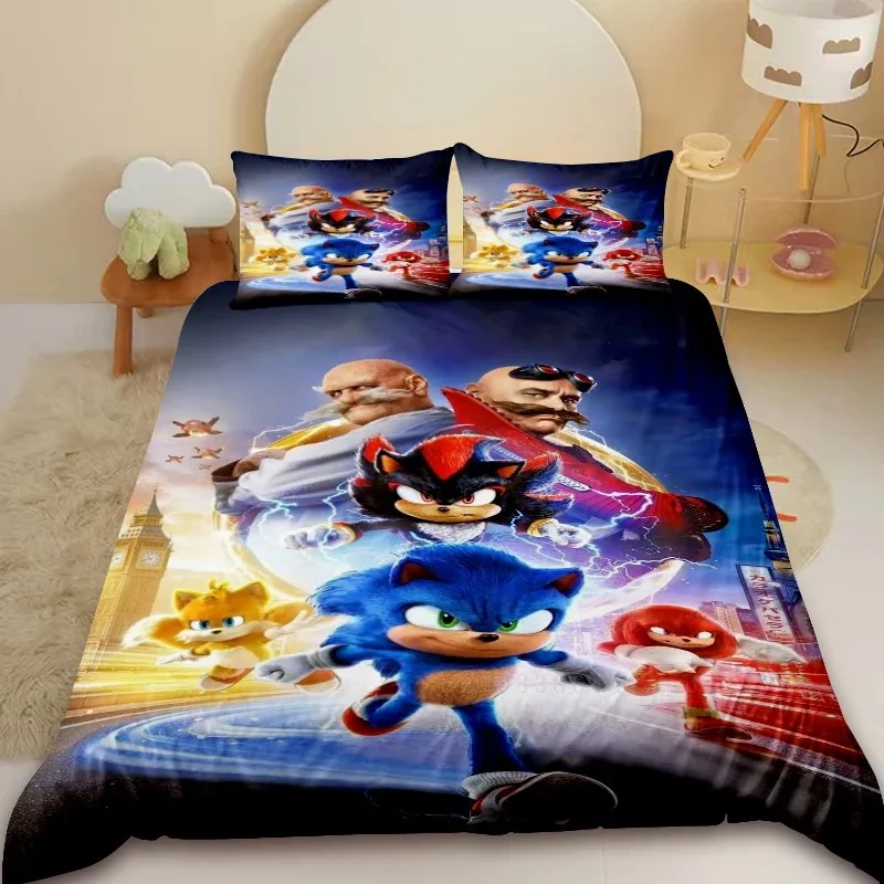 2/3pcs sonický prošívaná deka zakrýt sada kreslený ložní prádlo sada comforter zakrýt pro ložnice dekorace děti nejlepší svátek dárky