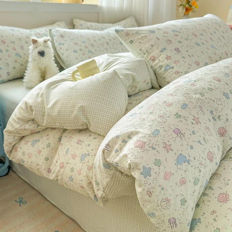 Lodní zvířata potištěné prošívaná deka zakrýt roztomilá kreslený styl housse de couette pro adult/kids single/queen rozměr funda nordica 150 cama