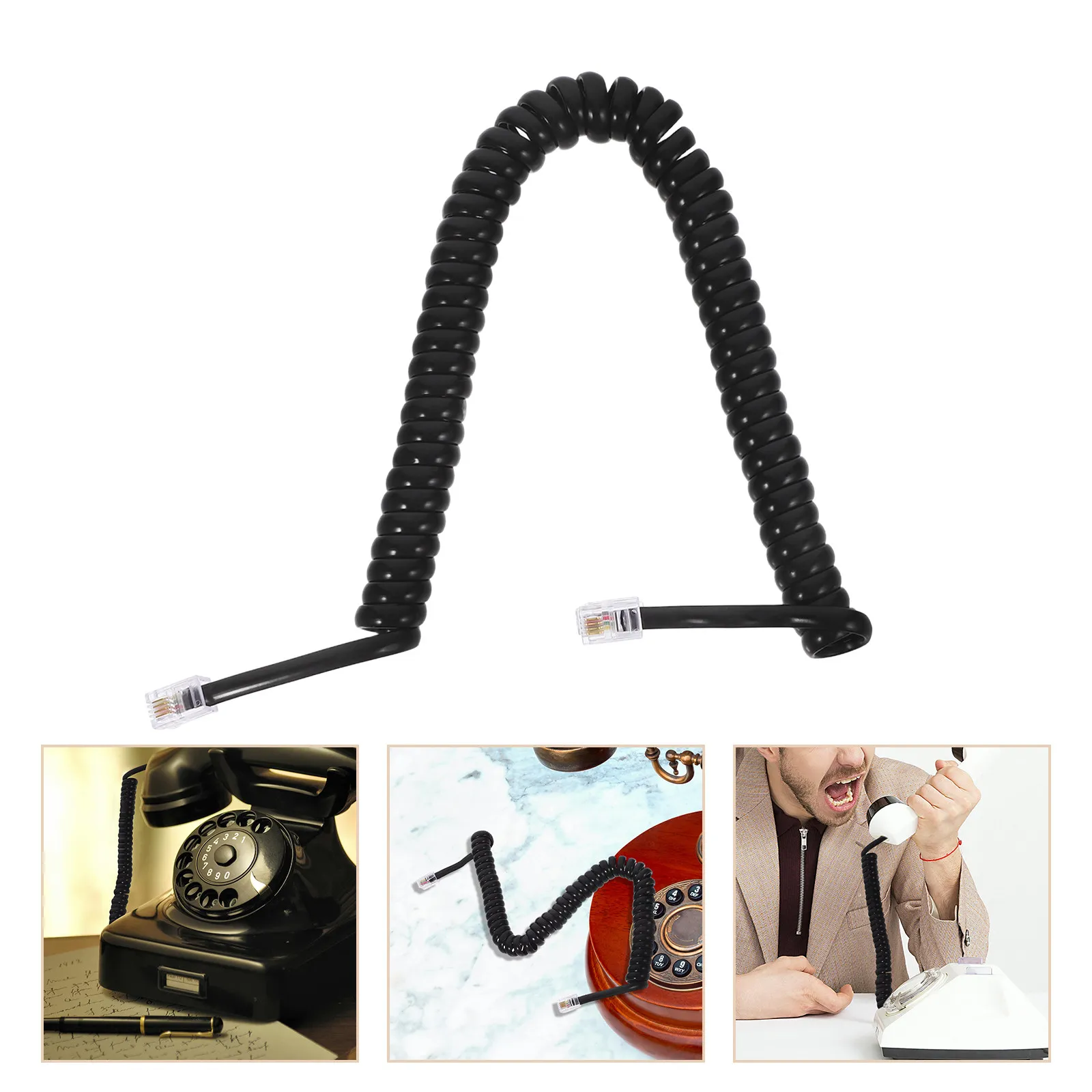 Telefon linky domácí úřad landline šňůra kudrnaté madlo měď drát prodloužení stočený spirála klávesnice telefon kabel černá dlouhé změť