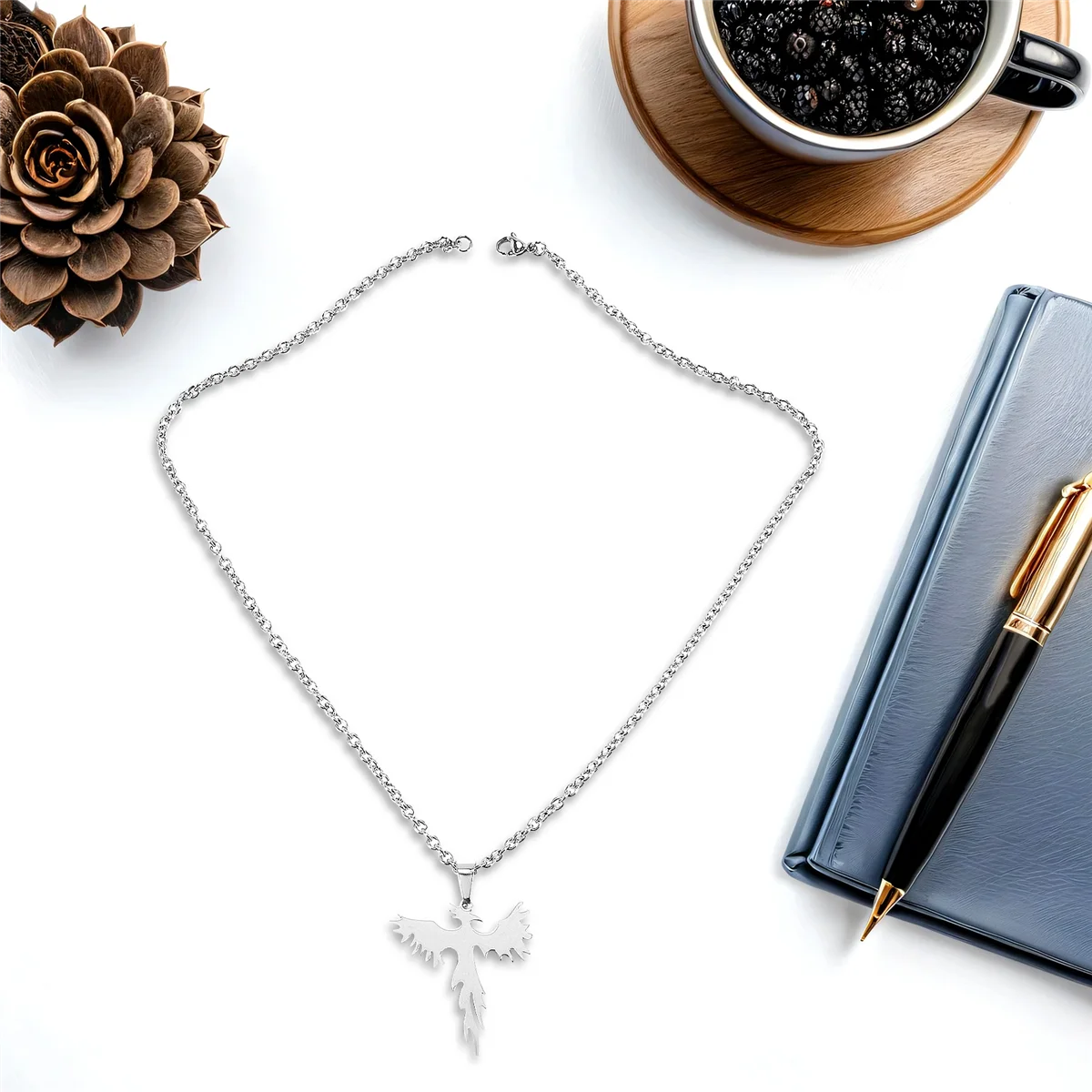 A07R šperků nerez ocel fénix přívěsek s 50cm běžící pás, řetízek pro muži ženy, stříbro