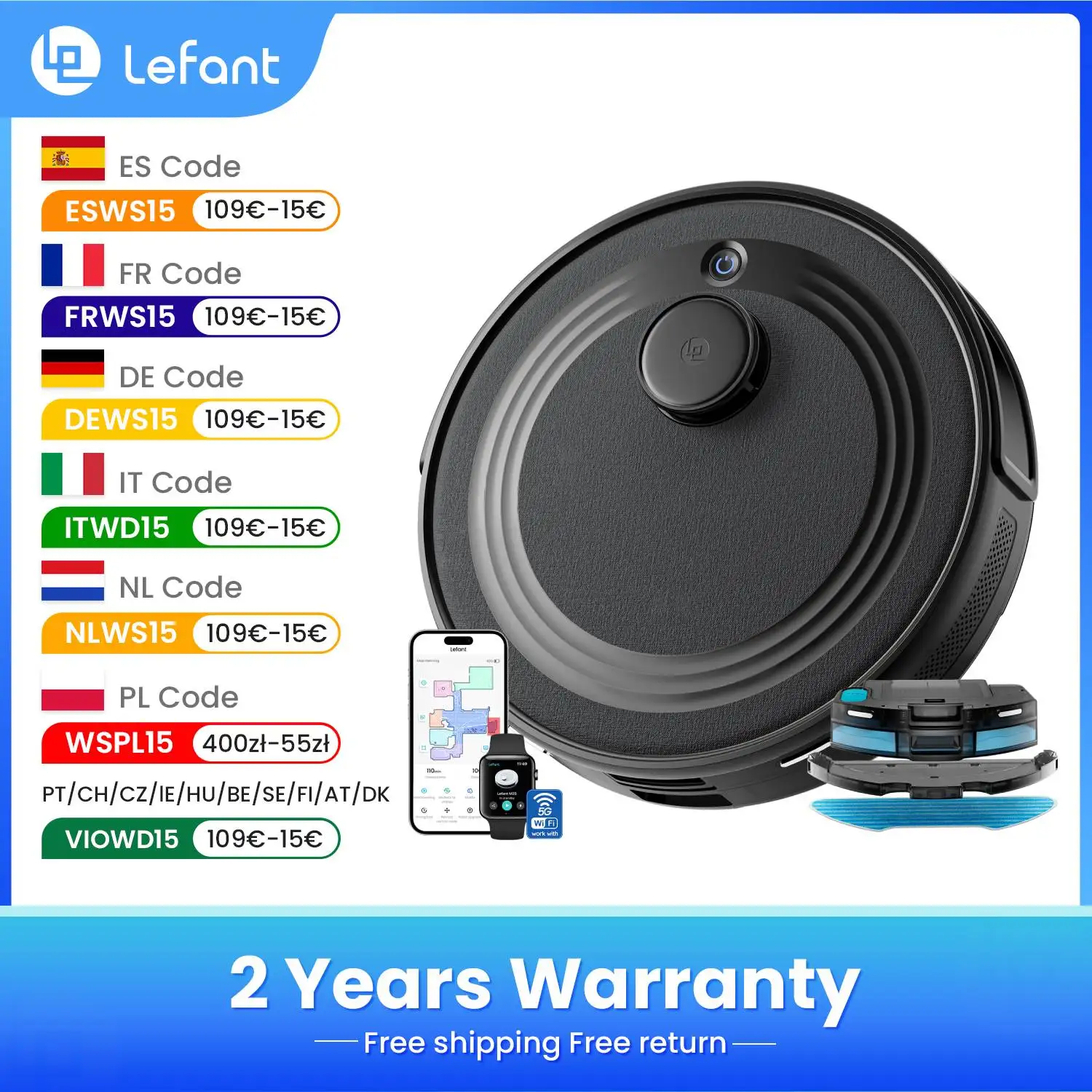 Lefant M2S robot vacuum čistič s mop, 10000pa sání, laser navigace, 240 minut, APP control/alexa/2.4g&5g WIFI
