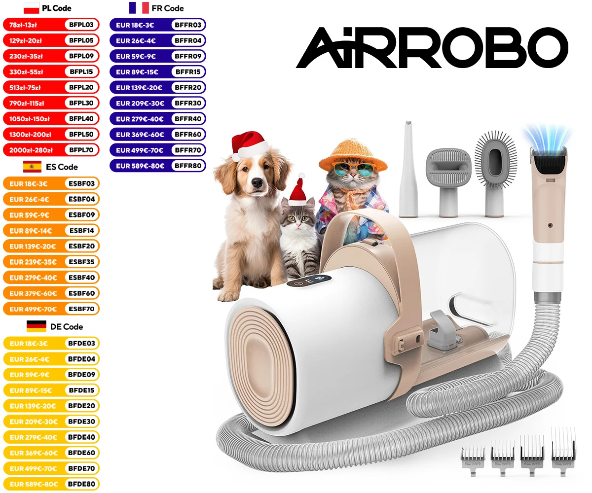 AIRROBO PG50 pes grooming souprava, 5barvy v 1 pes grooming vacuum , 2.5L prach, 11000pa, super sání pro zvířátko vlasy, nízko hluk