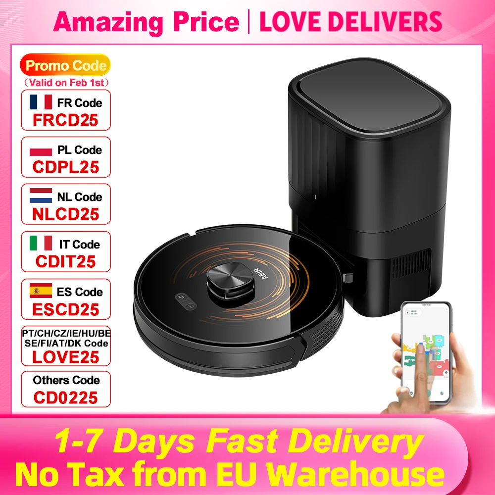 ABIR K30 robot vacuum čistič, auto-empty nádraží, laser lidar, 6500PA sání, multi-floor maping, chytrý domácí mokrý suchý přístroj