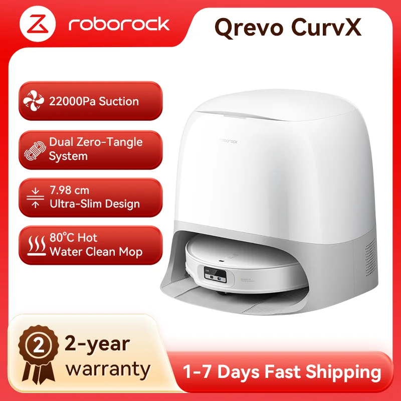 Roborock qrevo curvx robot vacuum cleaner(qrevo štíhlý modernizované version) 22000 pa sání, 7.98cm ultratenké design, dvojitý anti-tangle systém, 80° horké voda na mýt mop, s motokrosových detekce funkce
