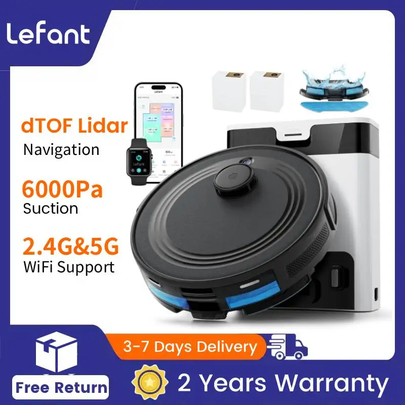 Lefant M2 pro robot vacuum s mop, self-emptying, 6000pa , DTOF laser navigace, PSD překážka avoidance, wi-fi/alexa ovládání