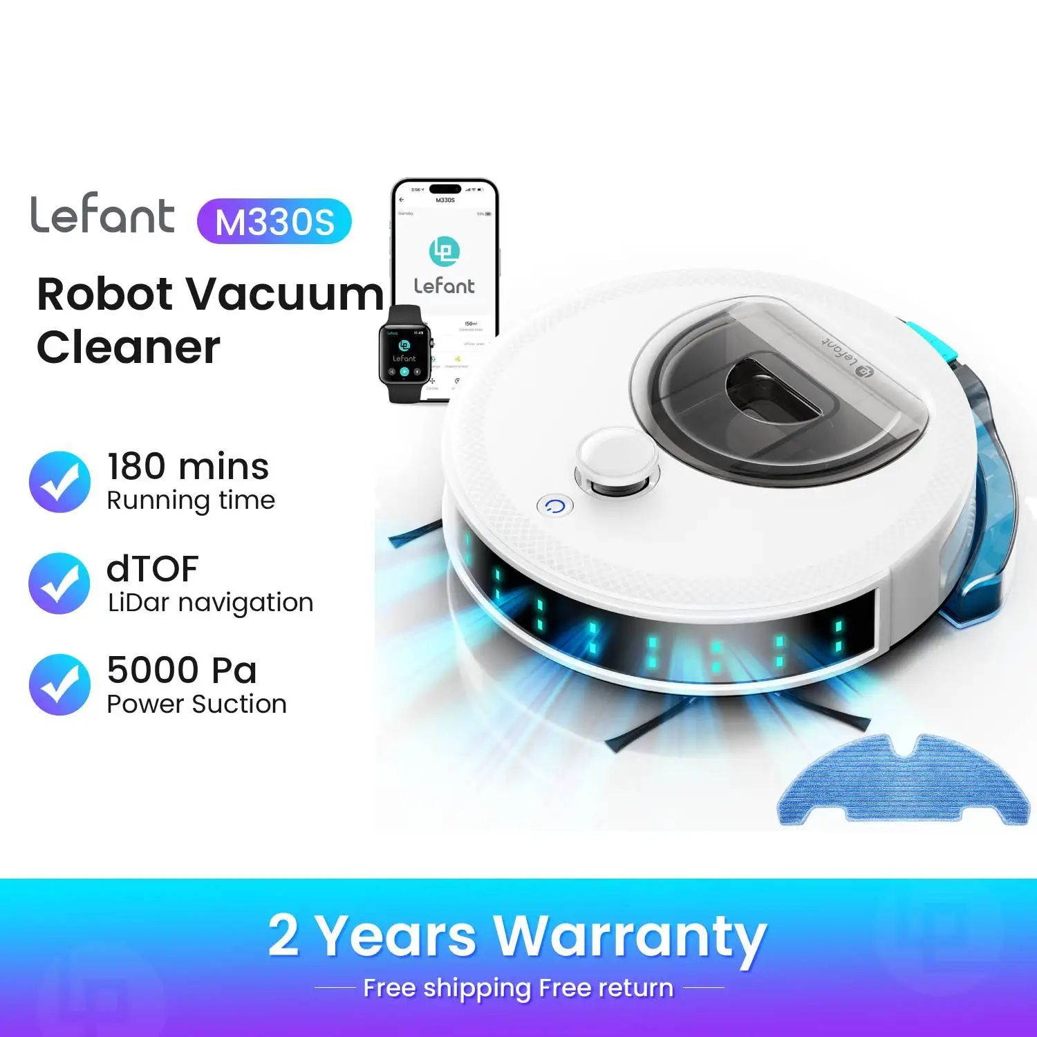 Lefant M330S lidar robot vacuum a mop, 190° PSD překážka avoidance robot vacuum čistič, 150mins, 2.4G/5G WIFI, zvířátko hair&carpet