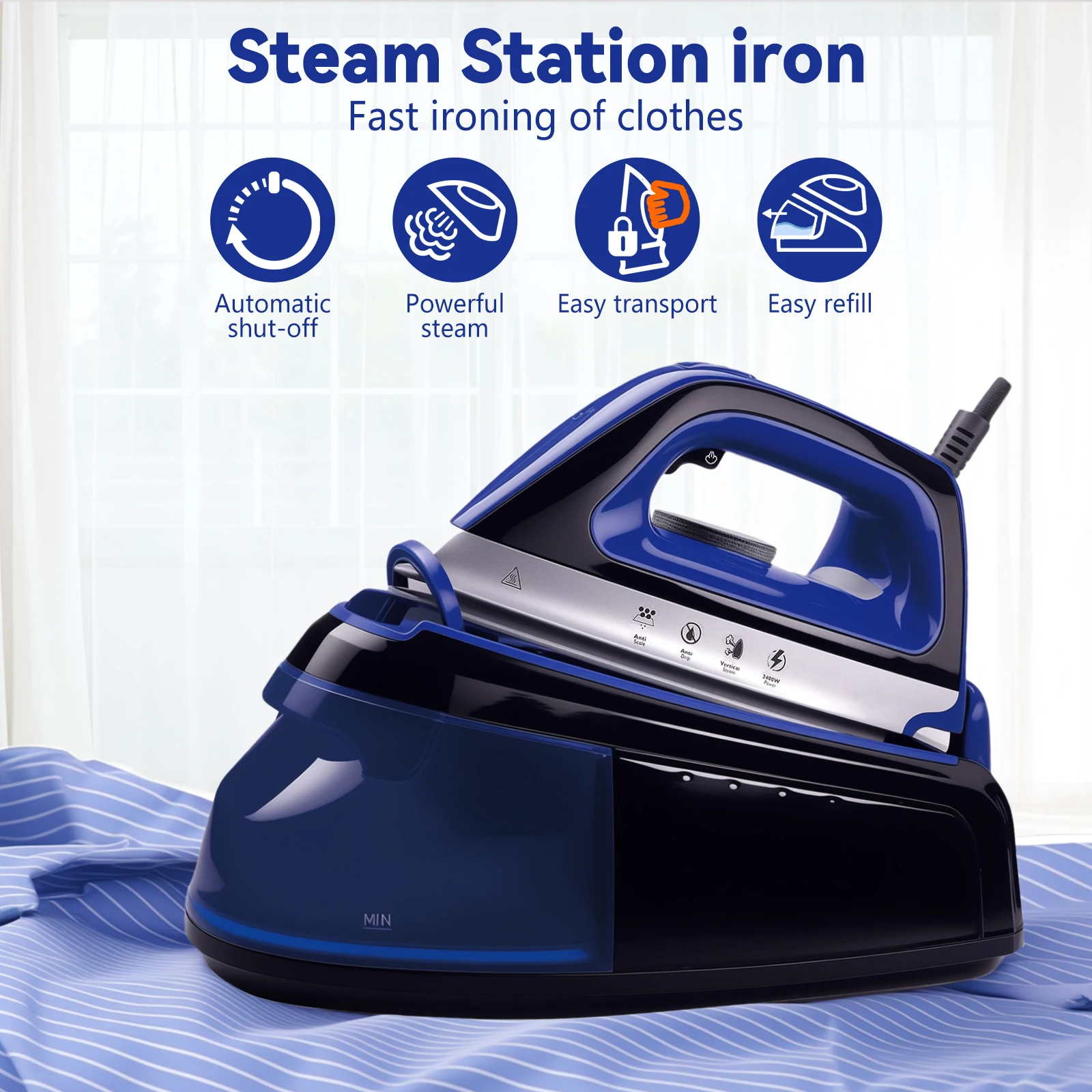 2400W pára žehlička s 1.2L velký voda komora - těžký celní poplatek domácnost elektrický žehlička (fast ohřev, anti-drip, svislý steam)​