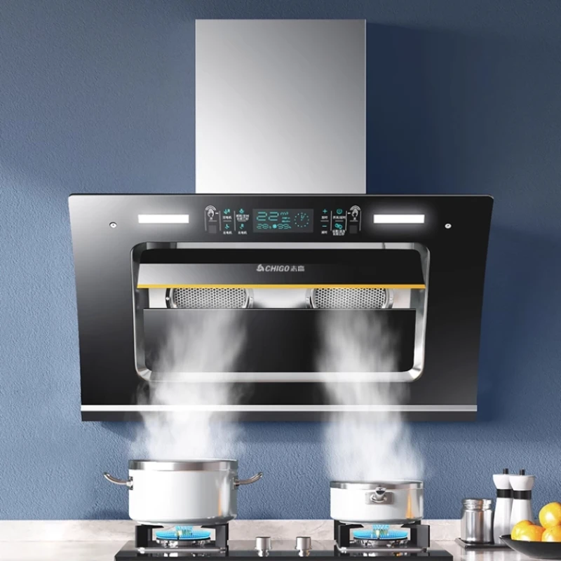 Chigo dosah kapuce domácnost dvojitý motorový velký sání kuchyň dosah kapuce strana sání automatický úklid dosah kapuce