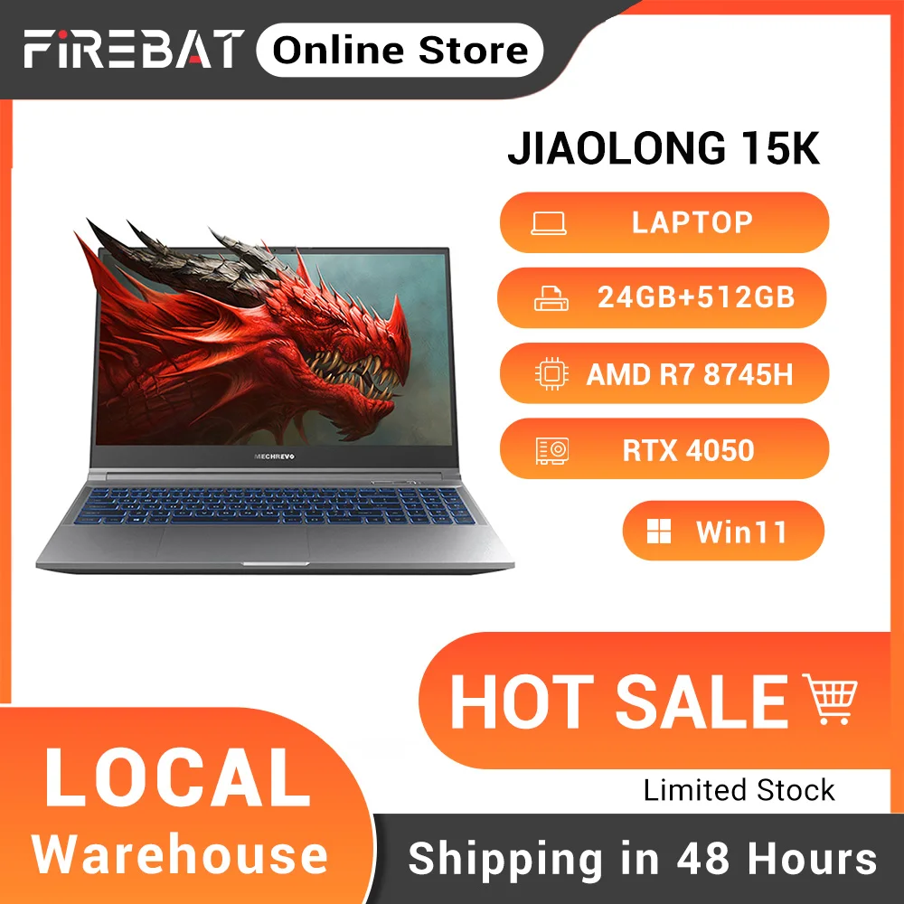 FIREBAT JIAOLONG 15K herní notebook AMD ryzen 7 8745H nvidia RTX 4050 DDR5 24GB beran M.2 512gb SSD wifi6 BT5.3 windows11 počítač