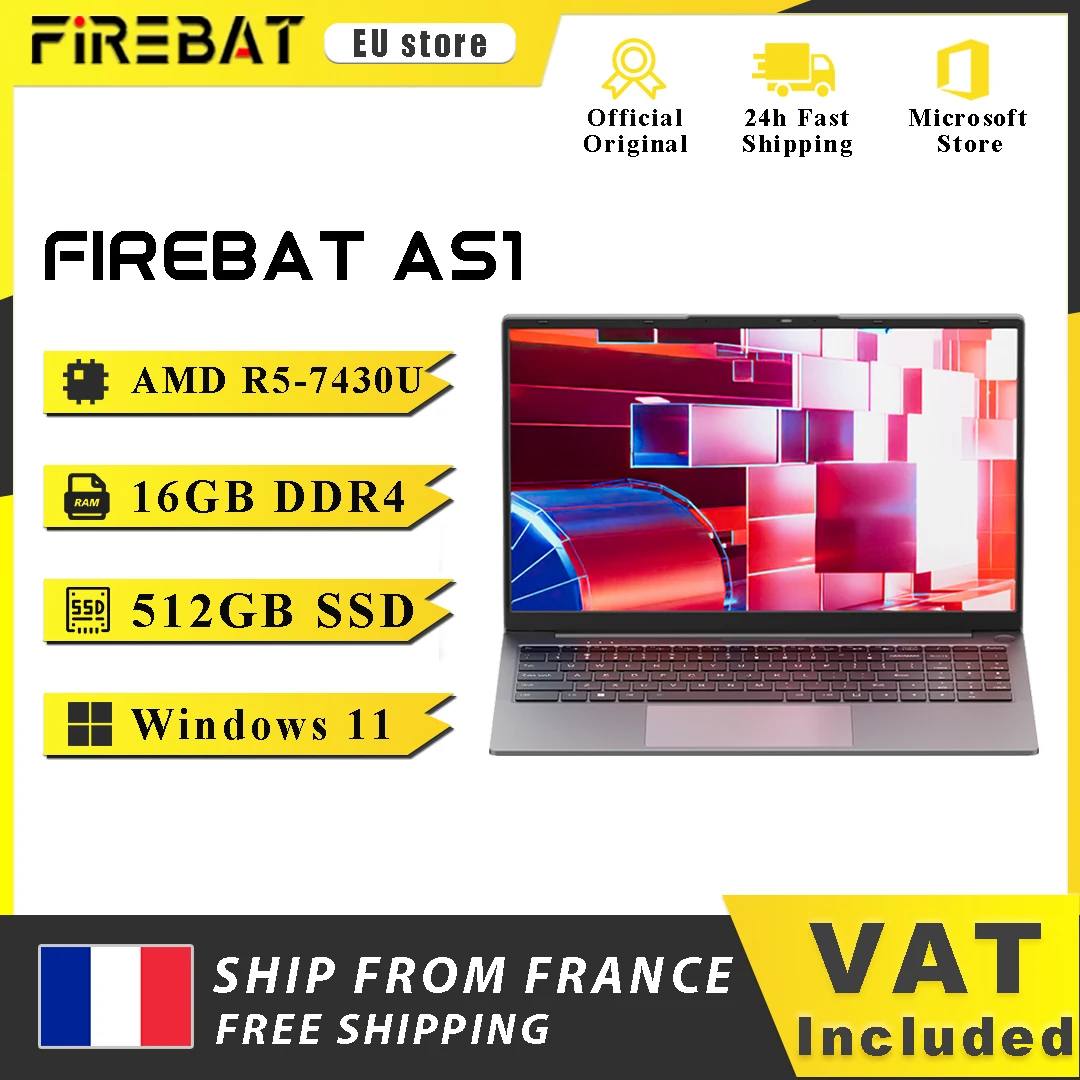 Firebat notebook AS1 AMD R5 7430U 16gb DDR4 512gb SSD 15.6 palec IPS okna 11pro notebook type-c WIFI6 podsvícená full-size klávesnice