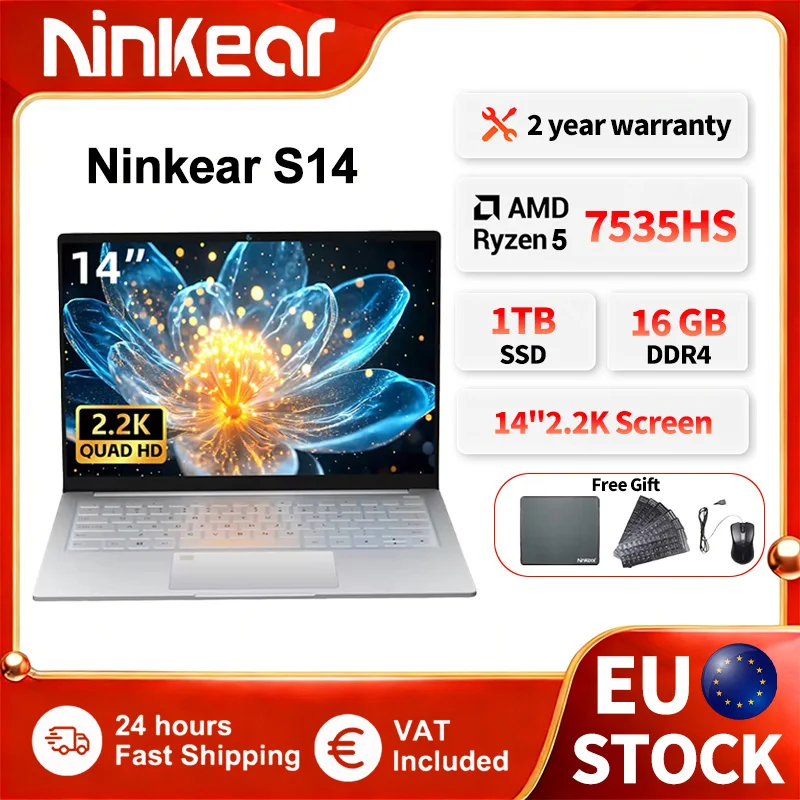 Ninkear S14 notebook AMD ryzen™ 5barvy 7535HS 14 palec 2.2K obrazovka 16gb LPDDR5 1TB SSD WIFI 6pro daktyloskopie uznání počítač notebook