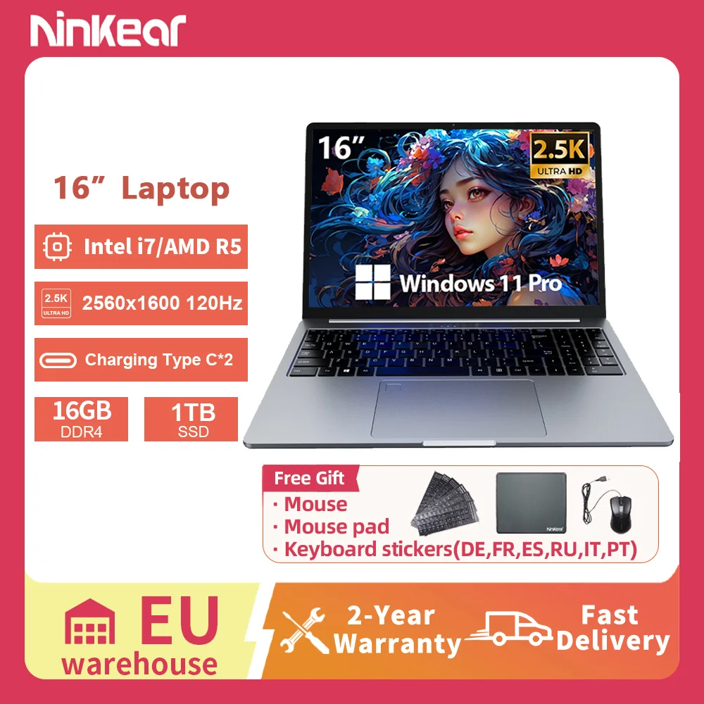 Ninkear notebook 16 palec 2.5K 120hz intel i7-12700h/amd ryzen 5barvy WIFI 6pro 16gb beran 1TB SSD notebook okna 11pro notebook úřad počítač