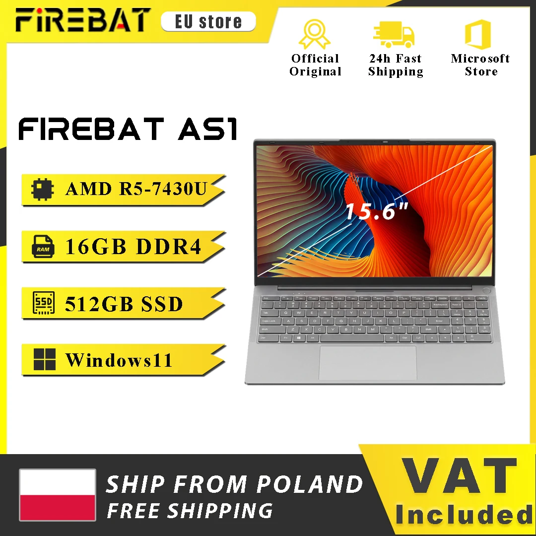 Firebat notebook AS1 AMD R5 7430U 16gb DDR4 512gb SSD 15.6 palec okna 11pro notebook type-c WIFI6 podsvícená full-size klávesnice