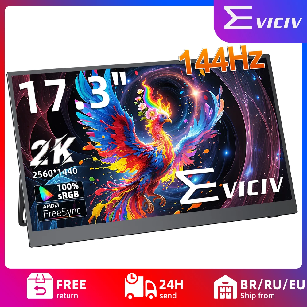 EVICIV 17.3" 2K přenosné monitor 2560*1440 144hz herní displej 400nits freesync hdr IPS reproduktorů pro notebook macbook telefon stůl