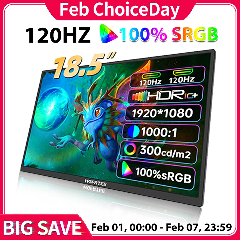 HGFRTEE 18.5inch přenosné monitor ADS-IPS 120hz RGB100% prodloužena displej notebook druhý obrazovka s VESA hole&stand