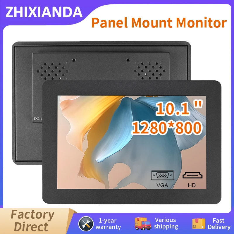 Zhixianda průmyslový panel namontovat 10.1 palec 1280x800 odporový kapacitní dotek obrazovka vložené monitor s vga HDMI USB levý bok lodi