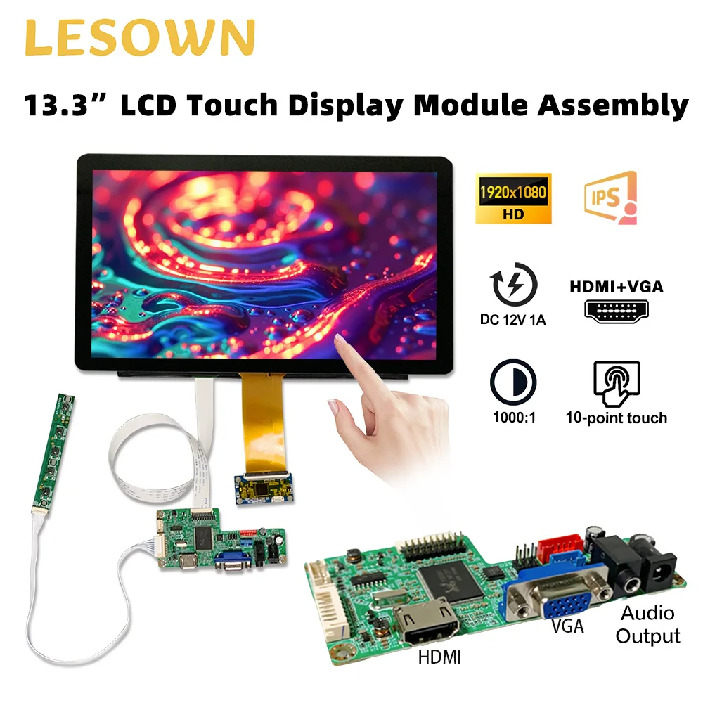 LESOWN 13inch IPS obrazovka 1920x1080 HDMI vga displej 1000:1 300cd/m2 LCD modul pro okna linux Android přístrojů PC notebook TV