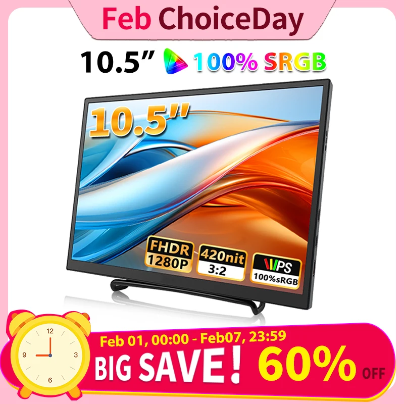 10.5-inch přenosné monitor 1280P 100%srgb 15:10 nízko modrá lehký pro xbox ps4 / 5barvy spínač buňka telefon PC loptop prodloužení