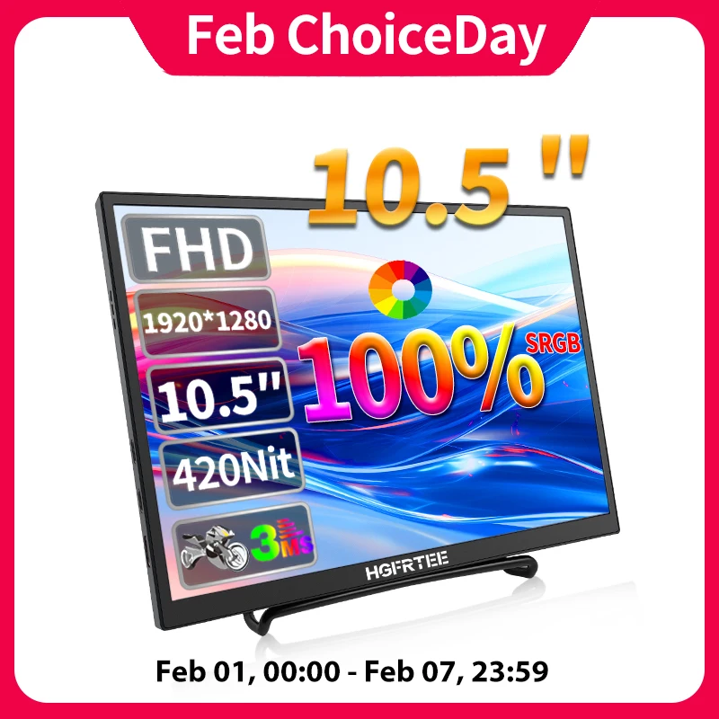 HGFRTEE 10.5 palec přenosné monitor 420cd/m ² FHD 1280P 100% SRGB notebook druhý obrazovka pro maca xbox PS4/5 spínač