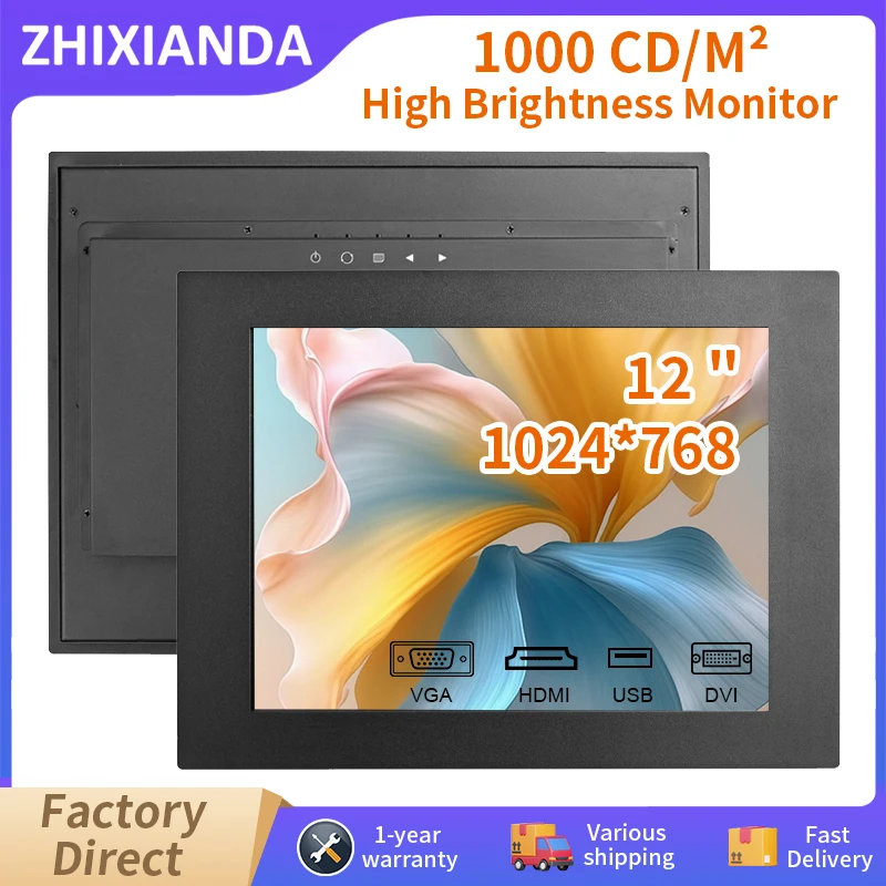 Zhixianda 1000 nits 12 palec 1024*768 panel namontovat monitor průmyslový kapacitní dotek obrazovka vložené displej s HDMI vga DVI